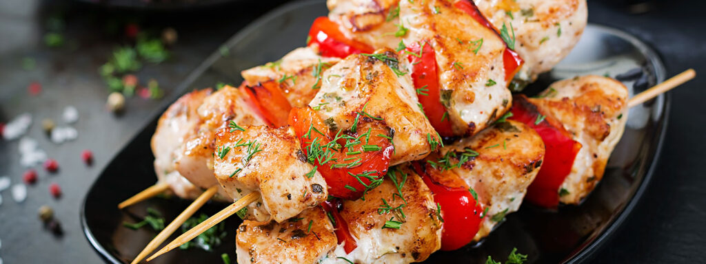 Gegrillte Hähnchenspieße mit Paprika und Zucchini