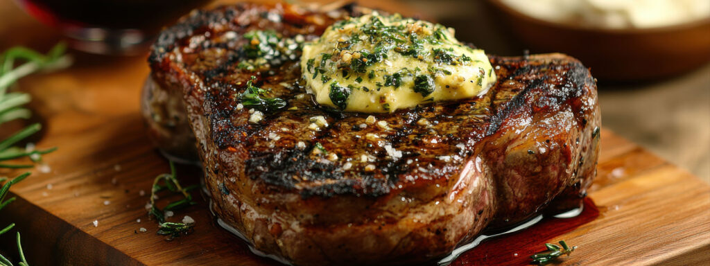 - Steaks mit einer dicken Scheibe Kräuterbutter belegen und leicht schmelzen lassen.