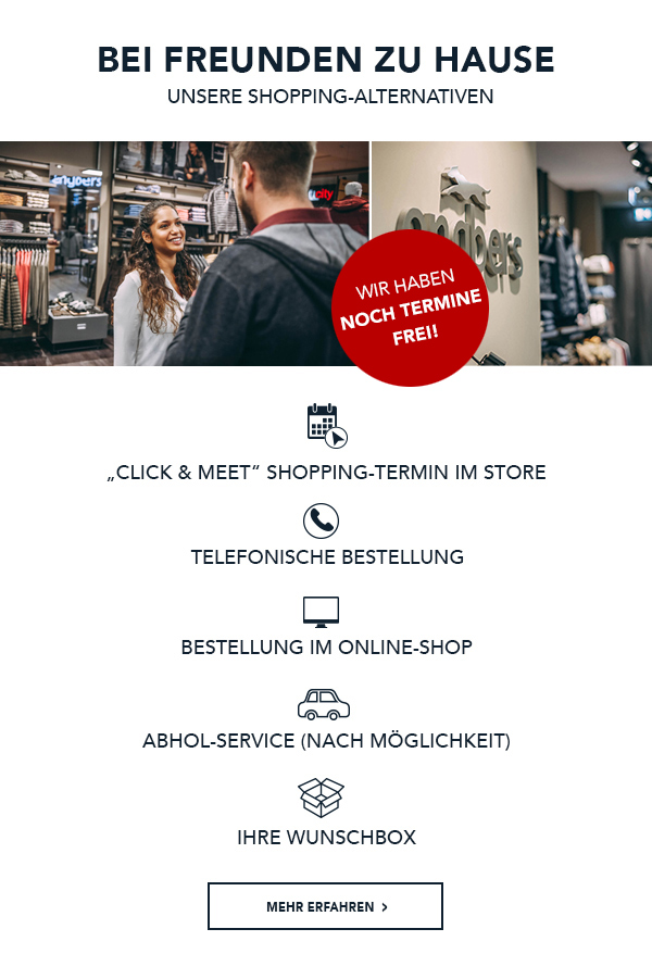 wir schaffen die kommende Zeit gemeinsam! Das Wichtigste ist, dass du dich wohlfühlst. Wir versuchen alle Shopping-Alternativen zu ermöglichen, um dir ein Wohlfühl-Shoppingerlebnis zu bieten. Ruf‘ uns einfach an und wir finden gemeinsam die passende Lösung für dich!