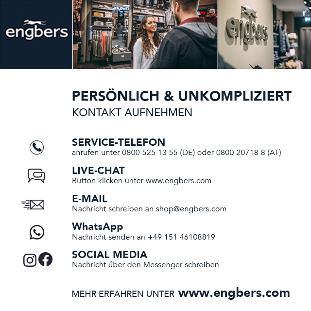 Unsere zentrale Service-Hotline: 0800 525 13 55 (engbers) // (AT: 0800 207 18 8)// 0800 525 13 44 (emilio adani)