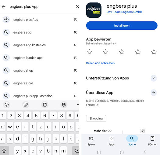 - Gib in die Suchleiste „engbers plus App“ ein und klicke auf „Installieren“