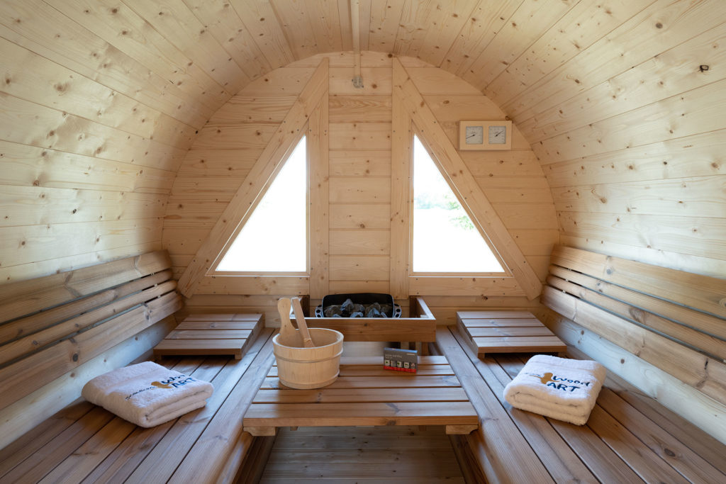 In aller Ruhe die Ruhe genießen, in einer Fasssauna