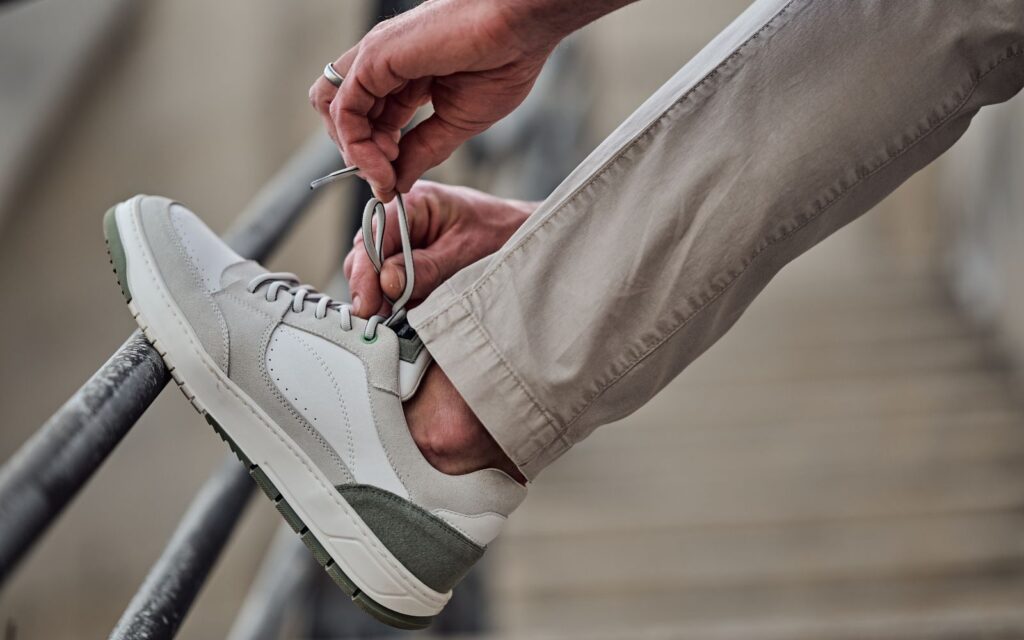 Auch das Ausziehen sollte ohne Hast erfolgen. Zuerst werden die Schnürsenkel aufgeschnürt und erst wenn die beiden Schnürteile bis zur Mitte der Schnürung gelockert werden, ist ein einfacher Ausstieg aus dem Schuh sinnvoll. Du umschließt dabei die Hinterkappe des Schuhs mit deiner Hand und ziehst so den Schuh von der Ferse. So wird der Schuh geschont und das Material erleichtert dir das Anziehen beim nächsten Mal.